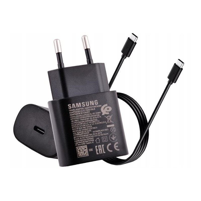 ORYGINALNA ŁADOWARKA SIECIOWA SAMSUNG TA800 USB - C SUPER FAST 25W + KABEL DA705BBE TYP C czarna